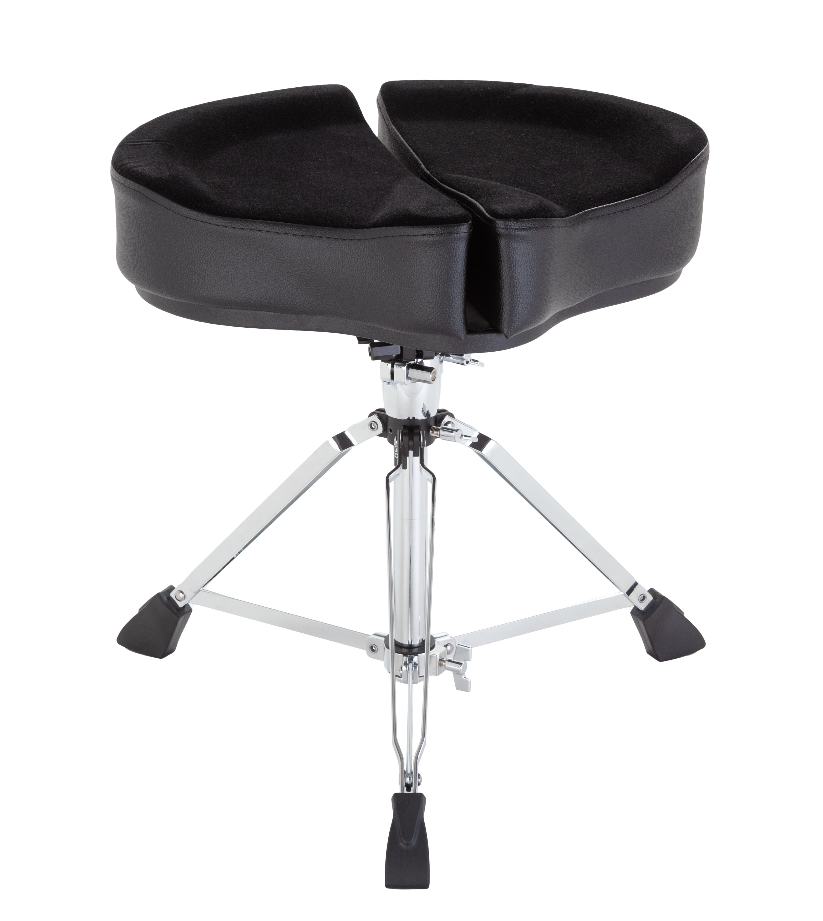 Стілець для барабанщика. Двосекційне сідло 18" з велюровою оббивкою та боковинами з екошкіри. Гвинтове регулювання по висоті: від 18" до 24" (46 - 61 см). База з 3 подвійними ніжками.