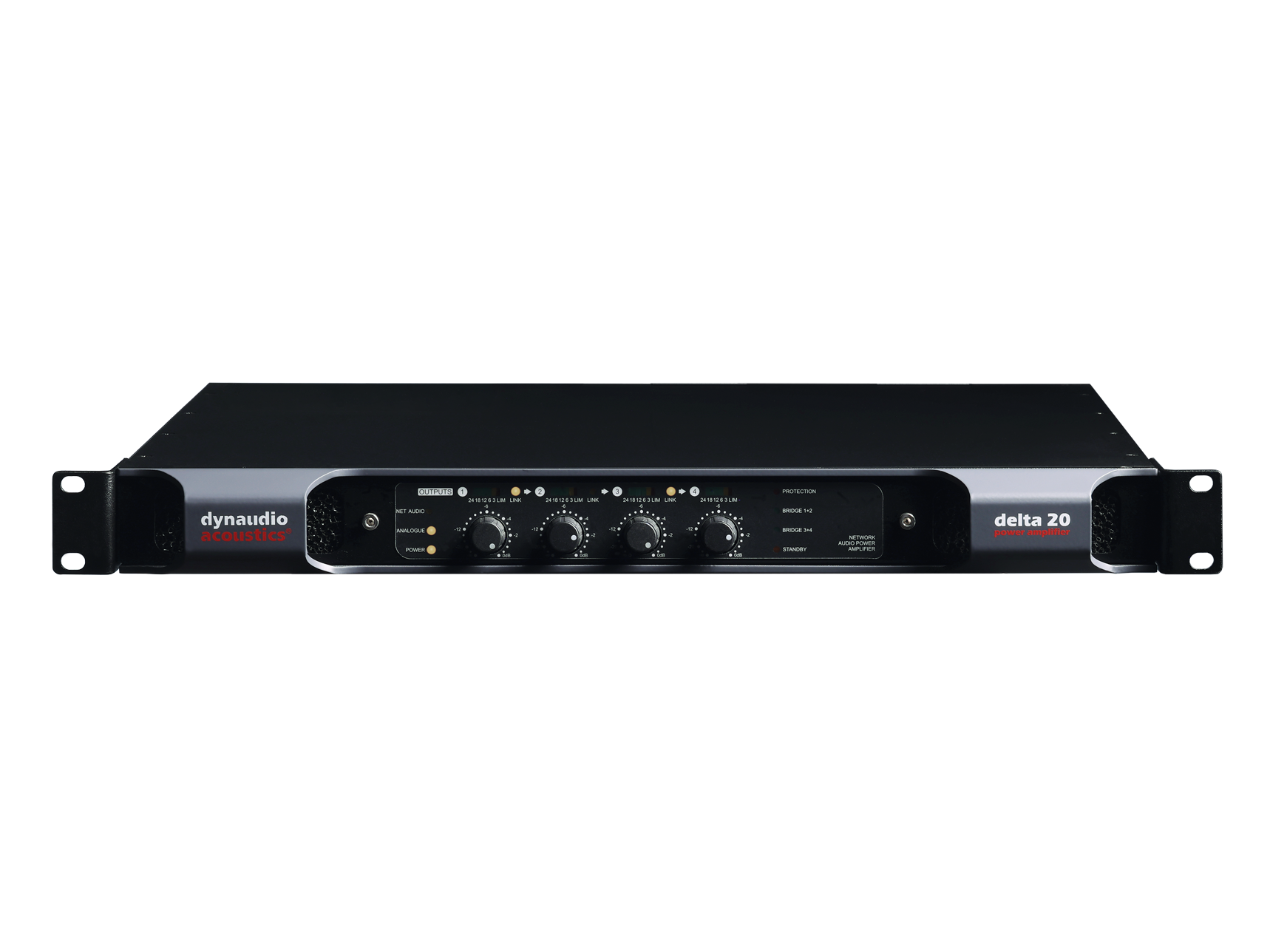 Delta 20. У кожній моделі використовується найвища якість технології підсилювача потужності, тому ви можете бути впевнені, що звук буде саме таким, як задумано. Тільки голосніше. 1U Delta 20 підсилює або чотири канали аналогового аудіо, або чотири канали мережевого аудіо через Dante; це система, орієнтована на майбутнє, яка здатна впоратися з будь-якими завданнями вашої студії. Під час використання Dante аудіо перетворюється за допомогою 24-бітних/96 кГц ЦАП. Залежно від імпедансу, Delta 20 пропонує вихідну потужність від 175 Вт до 480 Вт на канал, і ви можете використовувати мостові пари каналів або суміжні входи в аналоговому або цифровому режимах для повної гнучкості. Що стосується джерела живлення, Delta 20 має окремий лінійний драйвер 70/100 В; автоматичний перехід у режим очікування (з часом пробудження менше 200 мс); та універсальне мережеве джерело живлення з підтримкою PFC для використання в усьому світі. Ви також отримуєте GPIO для дистанційного керування та моніторингу, резервні входи підсилювача т
