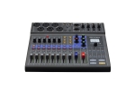 Цифровий мікшерний пульт для подкастів і музики, 6 комбінованих мікрофоннних/лінійних входів XLR/TRS 1/4" + 2 стерео лінійних входи TRS 1/4", фантомне живлення +48В, обрізний фільтр НЧ (75 Гц), перемикач Hi-Z / Pad на вхідних каналах, 3-смуговий еквалайзер на кожному каналі, майстер вихід 2 х XLR (балансні) / TRS 1/4" + 3 моніторних виходи TRS 1/4", вбудований процесор ефектів 8 програм, вбудований багатоканальний рекордер на SD карту, USB-аудінтерфейс для DAW 12in/4out, можливість підключення до iOS пристроїв в якості аудіоінтерфейсу, 6 назначуваних педів для запуску відтворення звуків, 7 користувальницьких сцен, робота від USB-A блоку живлення або 4хAA батарейок, 268 х 282 х 74 мм, вага 1,56 кг. У комплекті поставляється кабель TRRS (підключення до мобільних пристроїв в якості гарнітури для інтерв'ю).