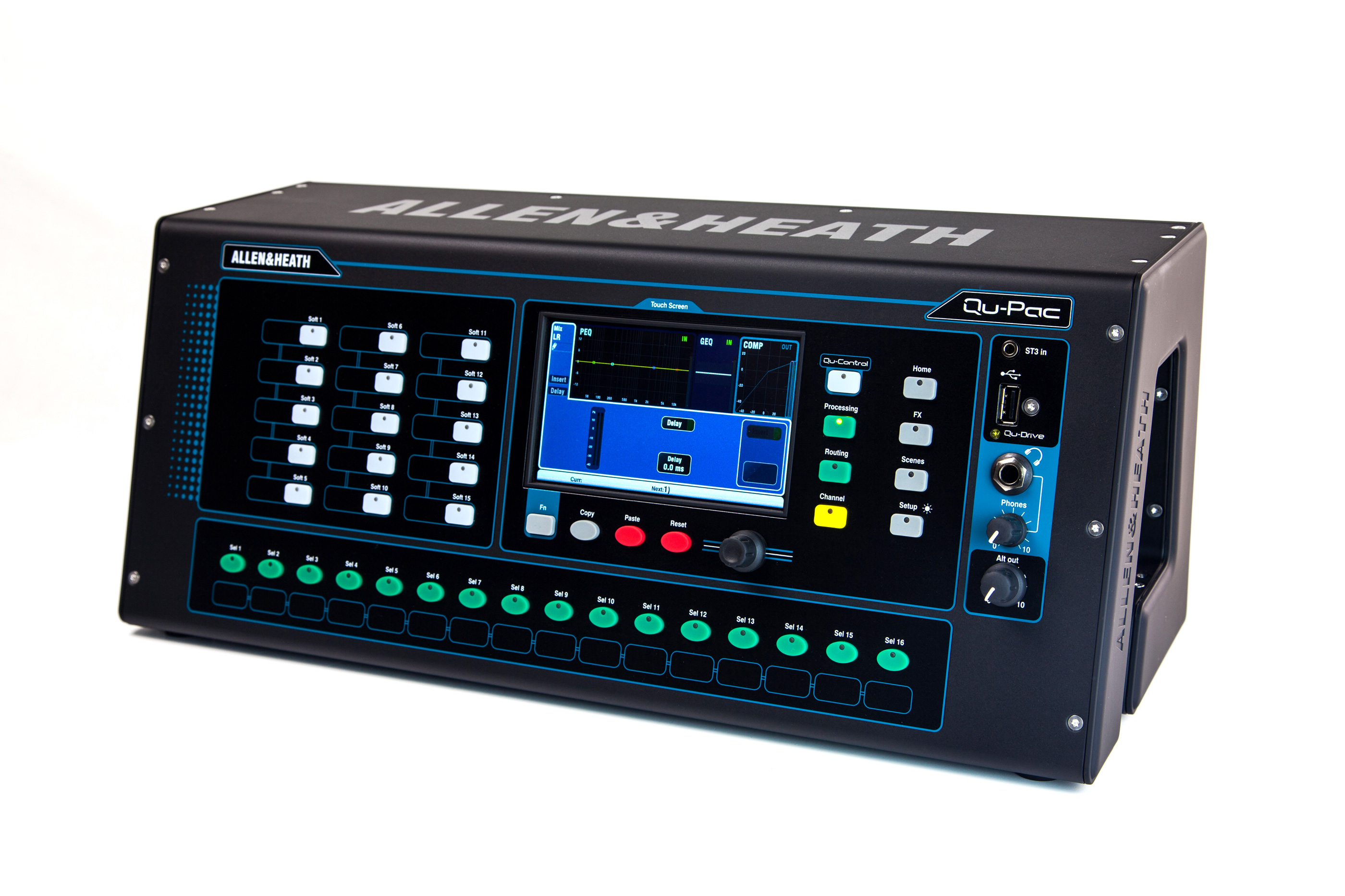 Цифровий мікшерний пульт, 96 кГц XCVI. 38 входів (32 моно, 2 стерео, USB), 12 міксів (6 моно AUX/груп, 6 стерео AUX/груп), 4 матриці, 6 процесорів ефектів, порт SLink, сенсорний дисплей 7". USB-A — стереозапис/відтворення аудіо, USB-C — аудіоінтерфейс (32×32), SD-карта — запис/відтворення аудіо (16×16 при 96 кГц, 32×32 при 48 кГц). AMM (автоматичний мікшер), набір ефектів Qu FX, додаткові опції (Add-ons) — моделі DEEP, динамічна обробка, RackExtraFX. Асистент усунення зворотного зв’язку (Feedback assistant), асистент налаштування рівня (Gain assistant). 17 фейдерів, 16 mic/line комбіновані входи, 2 стерео лінійні входи, 12 XLR виходів, 2 TRS та 1 AES3 вихід, 4 шари Channel Strip, 8 програмованих кнопок SoftKeys.