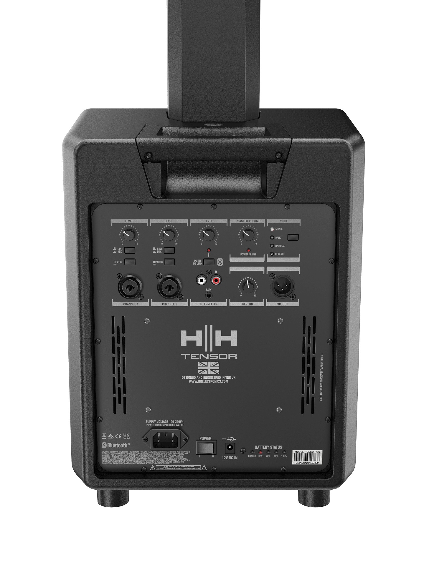 HH Electronics VRE-12AG2 12 384 грн. (є в наявності) Активна портативна акустична система 12" + 1", потужність (Peak @1m) - 800 Вт, клас підсилення - A/B, імпульсний блок живлення, входи: 2 x балансних XLR/Jack 6,3 мм з перемиканням MIC/LINE, 1 х Stereo Jack 3,5 мм, медіаплеєр с Bluetooth 4.1, USB та SD-картою, вихід - балансний XLR (Mix Out), окреме регулювання рівнів каналів 1-3, мастер еквалайзер та гучність, ВЧ - 1" (компресійний драйвер), НЧ - 12", кут розкриття 90° х 40°, частотний діапазон 35Гц - 20кГц, корпус чорного кольору з ручками, матеріал корпусу - поліпропілен, сталева сітка, стакан 35 мм, розміри - 585 мм (В) x 365 мм (Ш) x 325 мм (Г), вага - 10,3 кг.