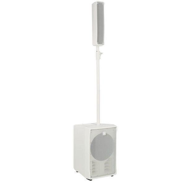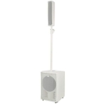 Двосмугова акустична система з підсилювачем, 15" НЧ + 8 x 4" неодимовий повнодіапазонний динамік. SPL 130 дБ, потужність 1400 Вт (пік), 40 Гц - 20 кГц. Кут покриття 90° x 30°, трохи нахилений., вхід XLR, вихід XLR + TRS 1/4" (link), Soft Limiter, регулятор Volume, перемикач MIC/LINE, презети Flat/Boost, Інноваційна DSP обробка (FiRPHASE). Монтажу топів на стійці, просте налаштування, колеса для транспортування., ВШГ- 2200 мм x 410 мм x 560 мм, вага 36,4 кг, Колір білий