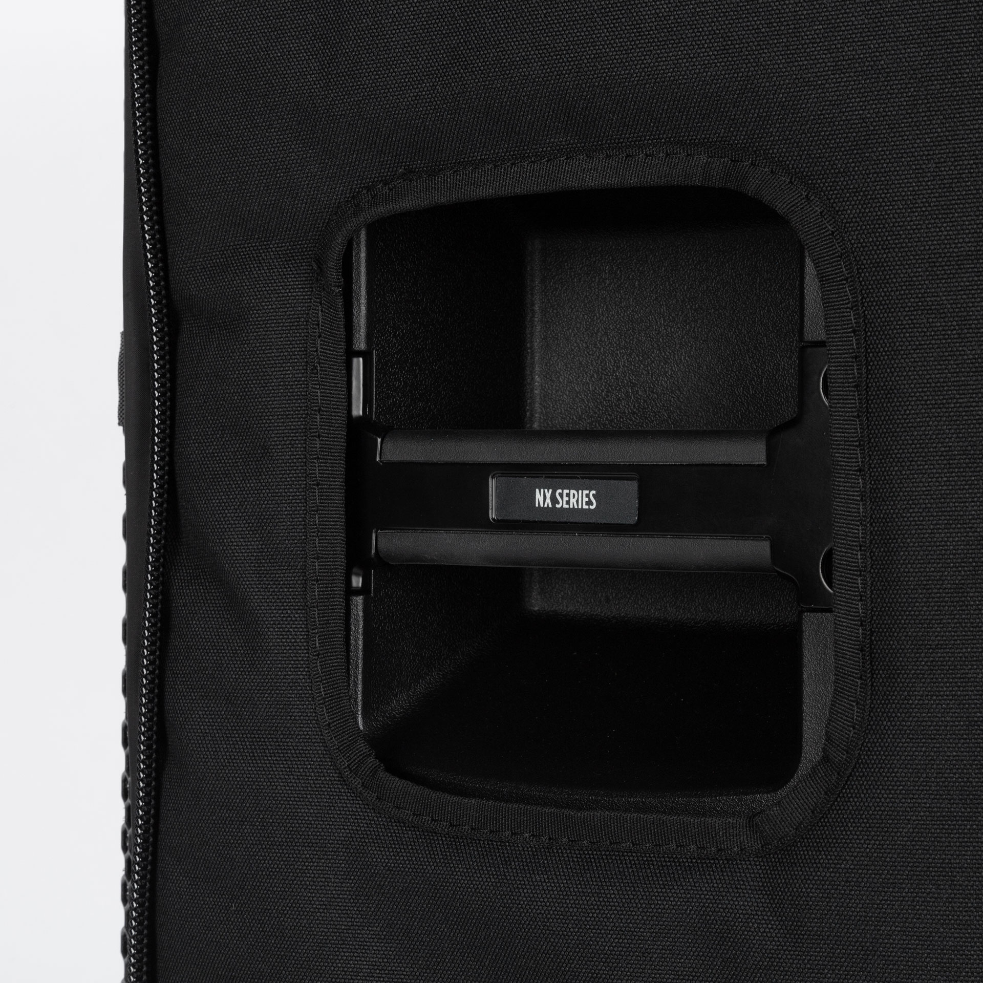 М'який чохол для сабвуферу SUB 808-AS. Він має міцну погодостійку зовнішню тканину з поліестеру, прокладку з піногуми та застібки-блискавки із застібками-липучками. Передню кришку можна відкрити та заблокувати за допомогою липучки з одного боку. Він має кілька отворів для ручок, задньої сполучної панелі і ковпачка для кріплення на стійку.