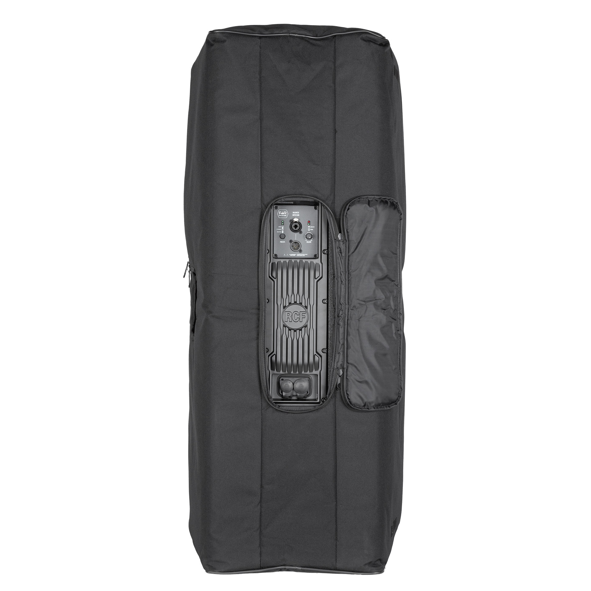 М'який чохол для сабвуферу SUB 808-AS. Він має міцну погодостійку зовнішню тканину з поліестеру, прокладку з піногуми та застібки-блискавки із застібками-липучками. Передню кришку можна відкрити та заблокувати за допомогою липучки з одного боку. Він має кілька отворів для ручок, задньої сполучної панелі і ковпачка для кріплення на стійку.