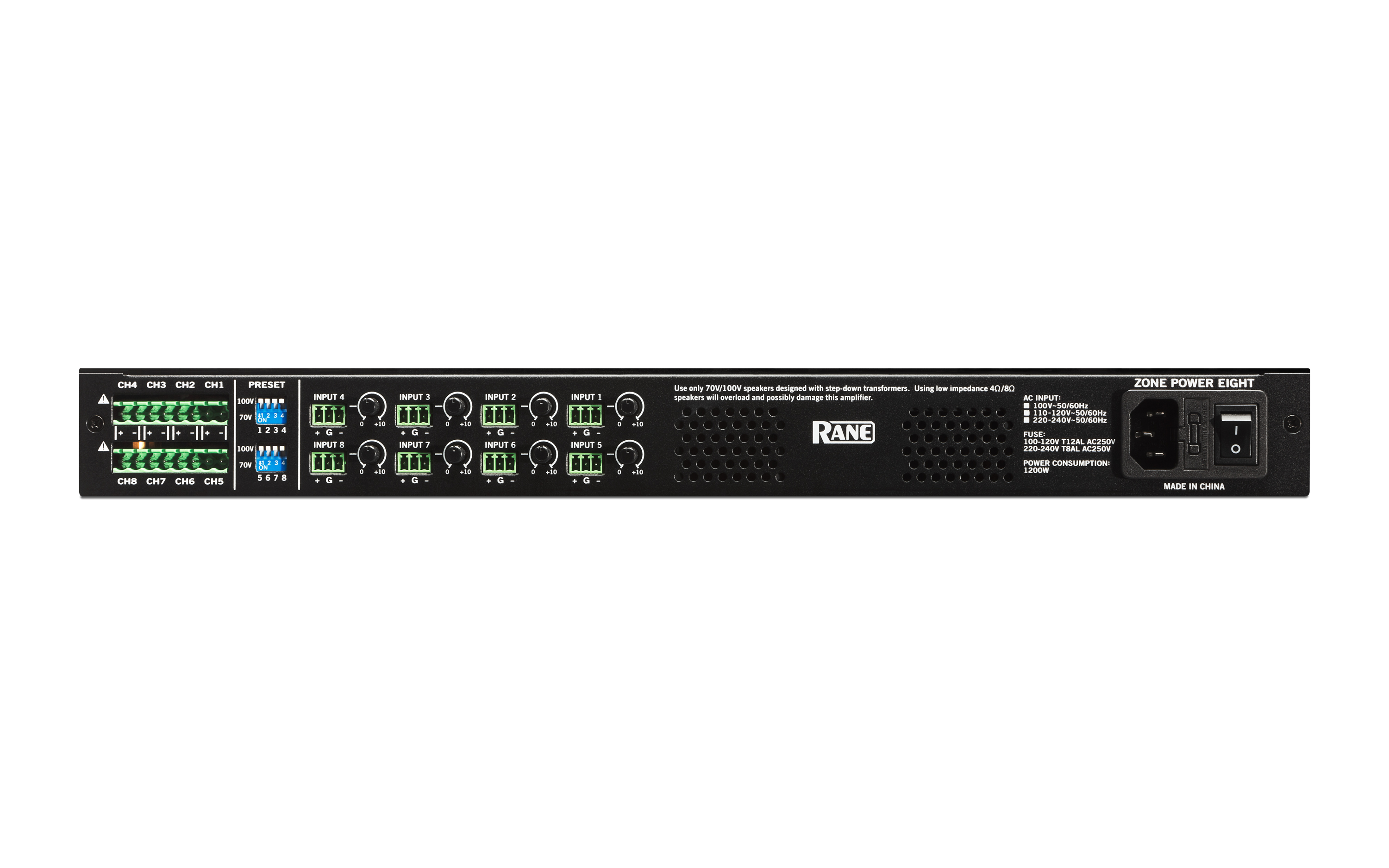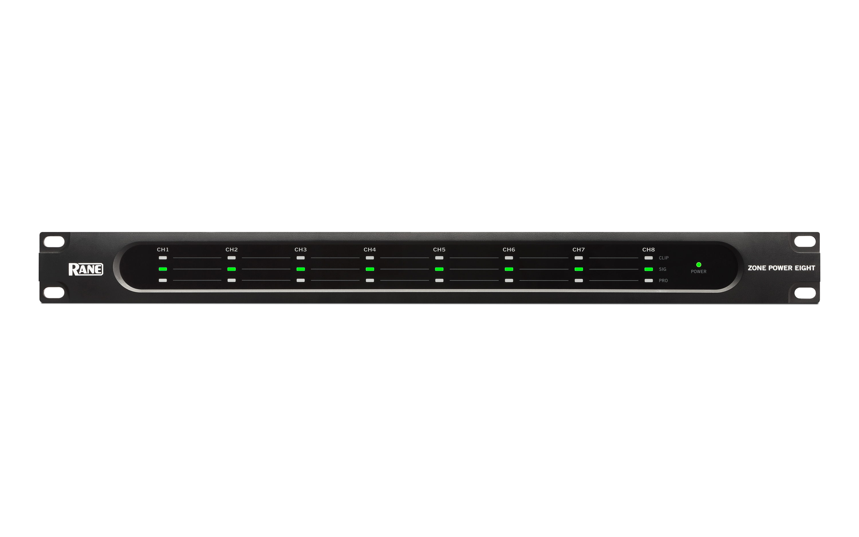 RANE Zone Power Eight - це 8-канальний підсилювач, що працюе на 70 В / 100В, 150 ват на канал.