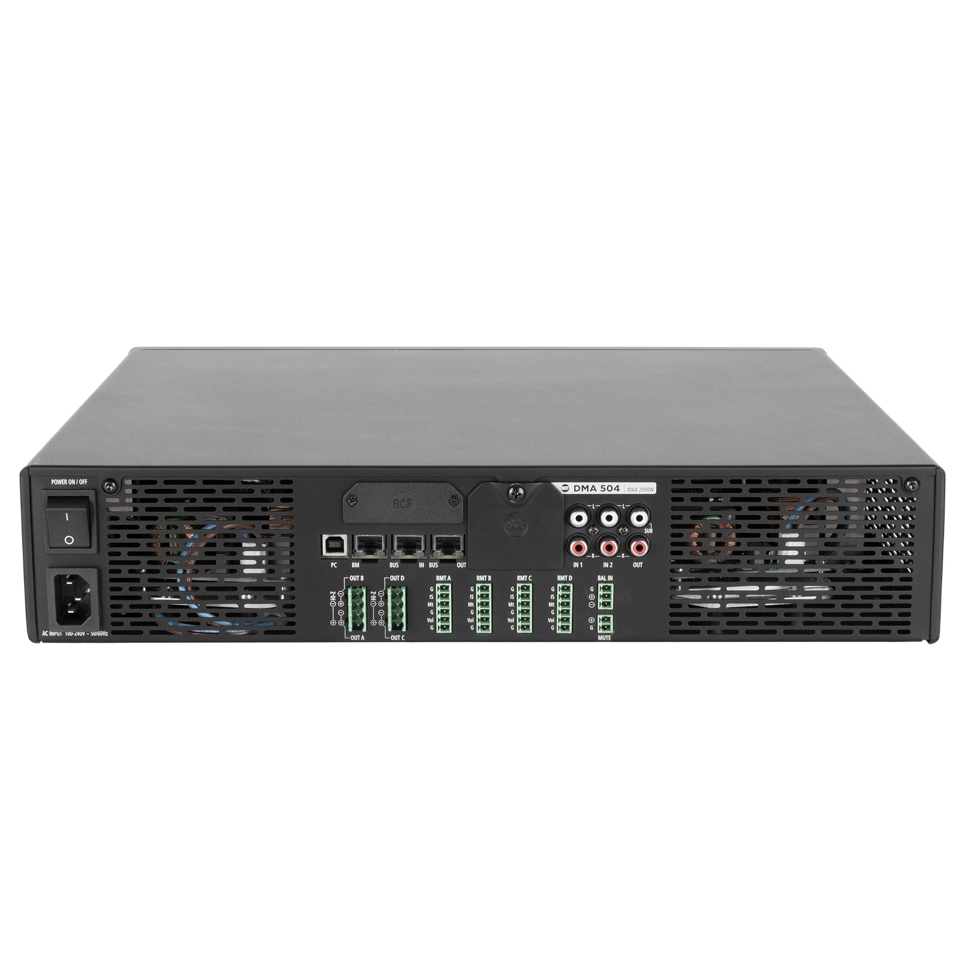 Активний інсталяційний матричний підсилювач 19" 2U, 4 x 500 Вт. Частотний діапазон: 20 Гц - 20 кГц. Вбудована DSP платформа з повною обробкою сигналу, включаючи PEQ, FIR фільтри, басовий підсилювач, лімітери, компресори та еквалізацію середовища. Підтримка RDNet для мережевого управління. Виходи для низькоомних динаміків (мін. 4 Ом) або 70/100 В лінії. Підтримка багатокімнатної архітектури з можливістю розподілу 4 аудіоканалів через аналоговий аудіо BUS. Колір - чорний