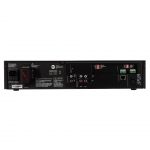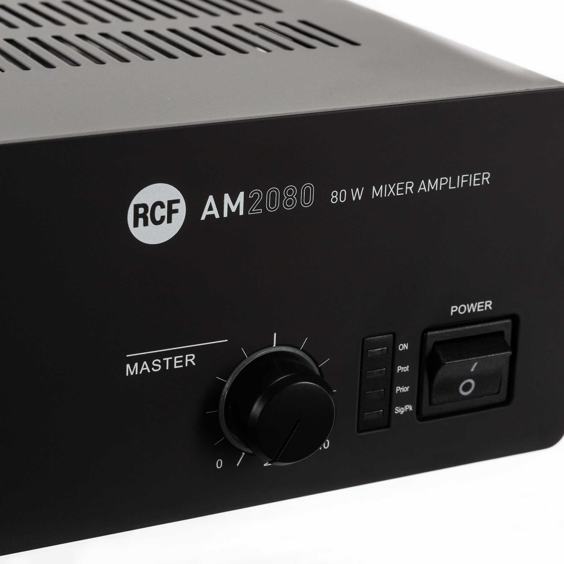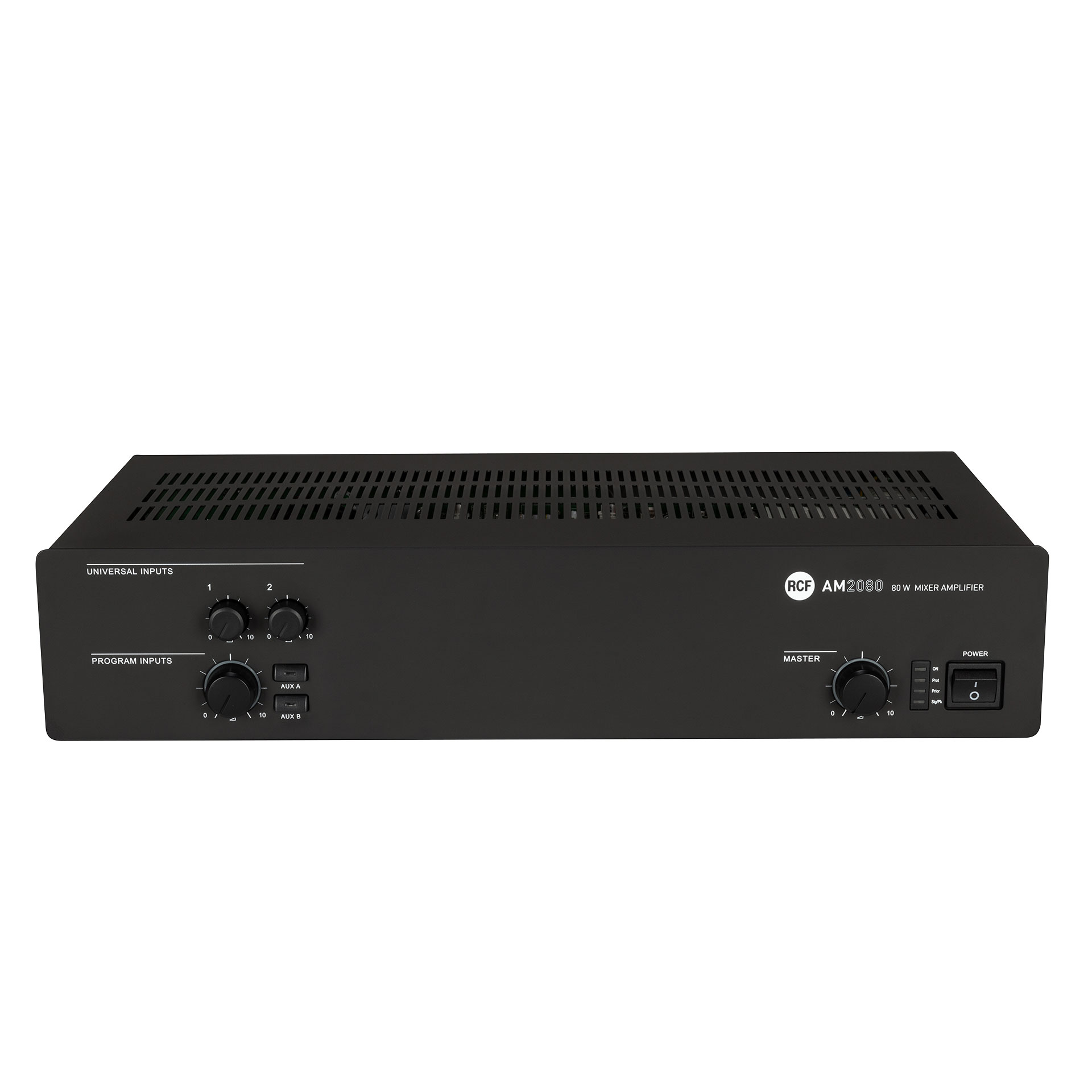 Активний інсталяційний мікшерний підсилювач 19" 2U, 80 Вт. 2 мікрофонно-лінійних входи на знімних роз’ємах (перший вхід також має XLR роз’єм) та 2 AUX входи для музичних джерел. Вихід для низькоомних динаміків (мін. 4 Ом) або 70/100 В лінії. 50 Гц - 16 кГц, колір - чорний. Підтримка VOX функції на вході 1, фантомне живлення, конфігуровані налаштування пріоритету, вбудований генератор цифрового сигналу та сирени, музика на утриманні та вихід PRE. Рекове кріплення в комплекті.