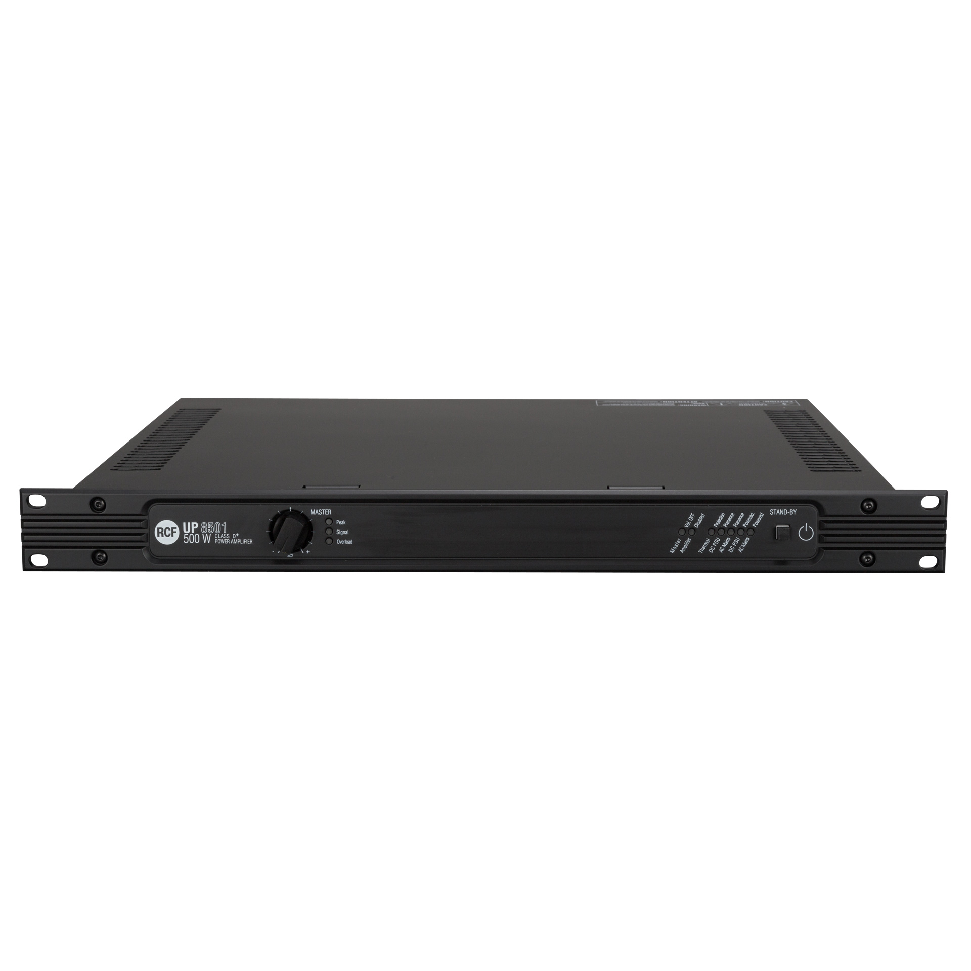 Активний інсталяційний підсилювач 19" 1U, 500 Вт. 2 входи на канал, подвійне живлення від змінного та постійного струму, пріоритетна схема. Частотний діапазон: 40 Гц - 16 кГц. Підсилювач класу D з високою ефективністю. Світлодіодні індикатори стану на передній панелі. Колір - чорний
