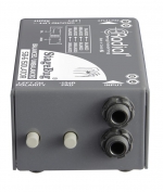Radial SB-1 Active 5 160 грн. (є в наявності) Активний директ-бокс, спеціально розроблений для акустичних та електро гітар, забезпечує лінійну частотну характеристику від 20 Гц до 20 кГц, динамічний діапазон понад 100 дБ, спотворення менше ніж 0,005%, оснащений вхідним опором 800 кОм та вихідним 330 Ом, має вхідний роз'єм 1/4 дюйма та вихідний XLR, підтримує фантомне живлення 48 В, споживає 5 мА, оснащений атенюатором -15 дБ для зниження чутливості входу та інверсією фази на 180°, розміри складають 114 мм x 47 мм x 34 мм, вага 250 г.