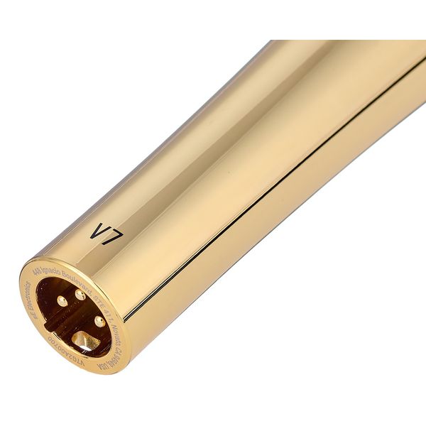 Динамічний студійний вокальний мікрофон, з покриттям із чистого золота 24 карати, суперкардіоїдна спрямованність, 40-19000 Гц, чутливість 2.0 mV/Pa (-54 dB), підключення 3-pin XLR, тримач, вітрозахист і чохол в комплекті.