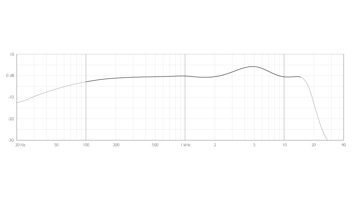 Всеспрямований конденсаторний мікрофон із капсулем діаметром 3 мм, побудований за принципом тиску. Має частотний діапазон 20 Гц – 20 кГц з ефективною смугою 40 Гц – 20 кГц та м’яким підйомом +4 дБ у верхньому діапазоні від 8 до 20 кГц. Номінальна чутливість становить 6 мВ/Па (-44 дБ відн. 1 В/Па), еквівалентний рівень шуму — 26 дБ(A), динамічний діапазон — 102 дБ. Максимальний звуковий тиск досягає 144 дБ SPL (пікове значення при THD 10%). Вихідний опір становить 30–40 Ω через MicroDot або 100 Ω при використанні адаптера DAD6001-BC з можливістю передачі сигналу на відстань до 300 м. Живлення здійснюється від 5–10 В через адаптер для бездротових систем або фантомним P48 (робота можлива від 12 В), споживання струму — 1,5 мА (3,5 мА з XLR-адаптером). Оснащується конектором MicroLock. Габарити головки становлять 3,4 × 14,4 мм, маса з кабелем і конектором — 8 г, довжина кабелю — 1,8 м. Робочий температурний діапазон від -40°C до +45°C при відносній вологості до 90%, колір — бежевий. |