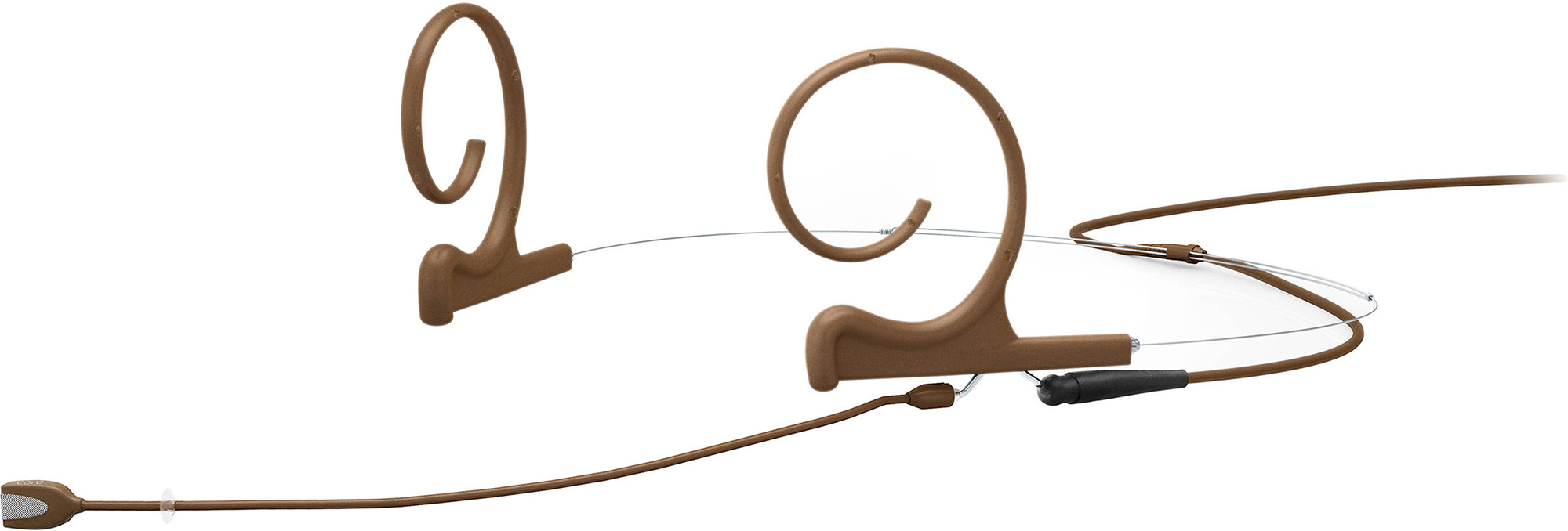 Мікрофон хедсет серії Flex, всенаправлений, дужка на два вуха, 5 мм плаский капсуль 4166 CORE, винос мікрофона 90 мм, чутливість 6 мВ/Па, кабель 1,3 м, захист IP58, колір коричневий, MicroDot. Динамічний діапазон 111 дБ. АЧХ: +3 дБ в області 8 - 15 кГц. Для роботи необхідне фантомне живлення 5-10 В (з адаптером DAD6001-BC - від 12 В).
