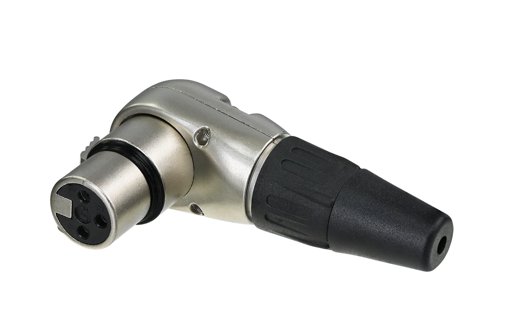Кабельний роз'єм XLR-"мама" кутовий 3-контактний, фланець типу D, хромований корпус, срібні контакти під пайку. В упаковці 100 шт, продаж тільки упаковками.