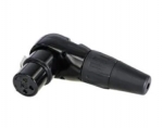 Кабельний роз'єм XLR-"мама" кутовий 3-контактний, фланець типу D, чорний корпус, позолочені контакти під пайку, пластиковий пакет.