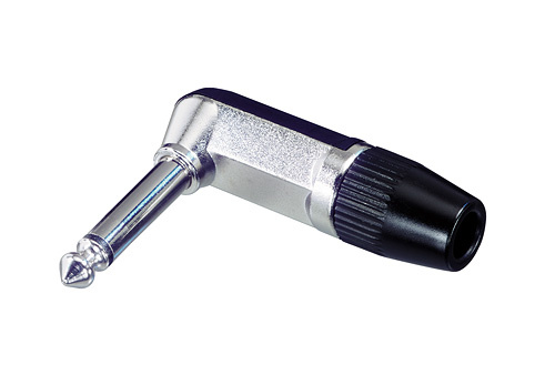1/4" (6,3 мм) кабельний моно джек "тато" (штекер) кутовий. Металевий корпус, пластикова втулка. 2-полюсний. Для кабелів діаметром до 6 мм.