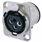 Панельний 3-полюсний роз'єм типу XLR "мама", фланець типу "D", для вертикальної установки на друкованій платі. Універсальна серія металевих корпусів XLR типу D для кріплення на панелі для кріплення на друкованій платі. Вставка знімається із задньої сторони роз'єму і фіксується на місці внутрішньою засувкою - що дозволяє збирати та перевіряти друковану плату перед монтажем у корпус.
