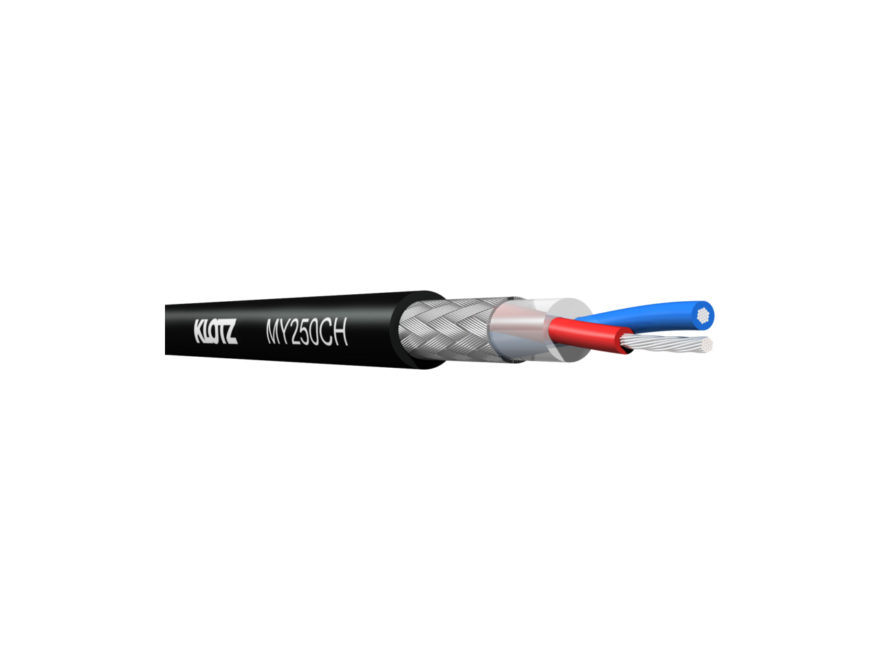 Klotz MY206SW 75 грн. (є в наявності) Професійний мікрофонний (балансний) кабель, провідники 28 x 0,10 мм, переріз 0,22 мм², ізоляція: поліетилен (PE), розташування жил: 2 жили + скручена бавовняний шпагат, екранування: мідний спіральний екран, зовнішня оболонка: ПВХ, матовий, загальний діаметр: 6,15 мм. Мін. радіус вигину: 30 мм, робоча температура: -20°C / +70°C. Опір провідника: < 85 Ω/км, ємність конд./конд.: 60 пФ/м, конд./екран: 110 пФ/м, опір ізоляції: > 0,1 МОм х км. Колір - чорний.