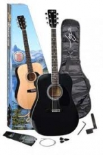Набір: акустична гітара Dreadnaught з корпусом з американської липи, регульований анкер, механіка лита, колір чорний, в комплекті гітарний чохол, тюнер, медіатори, ремінь навчальний dvd.