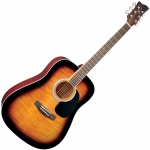 Акустична гітара дредноут, корпус - липа, гриф - махагони, підставка і накладка на гриф - палісандр, регульований анкер, хромовані кілки, глянсове покриття, кілки - хром, колір - тютюновий санбёрст.