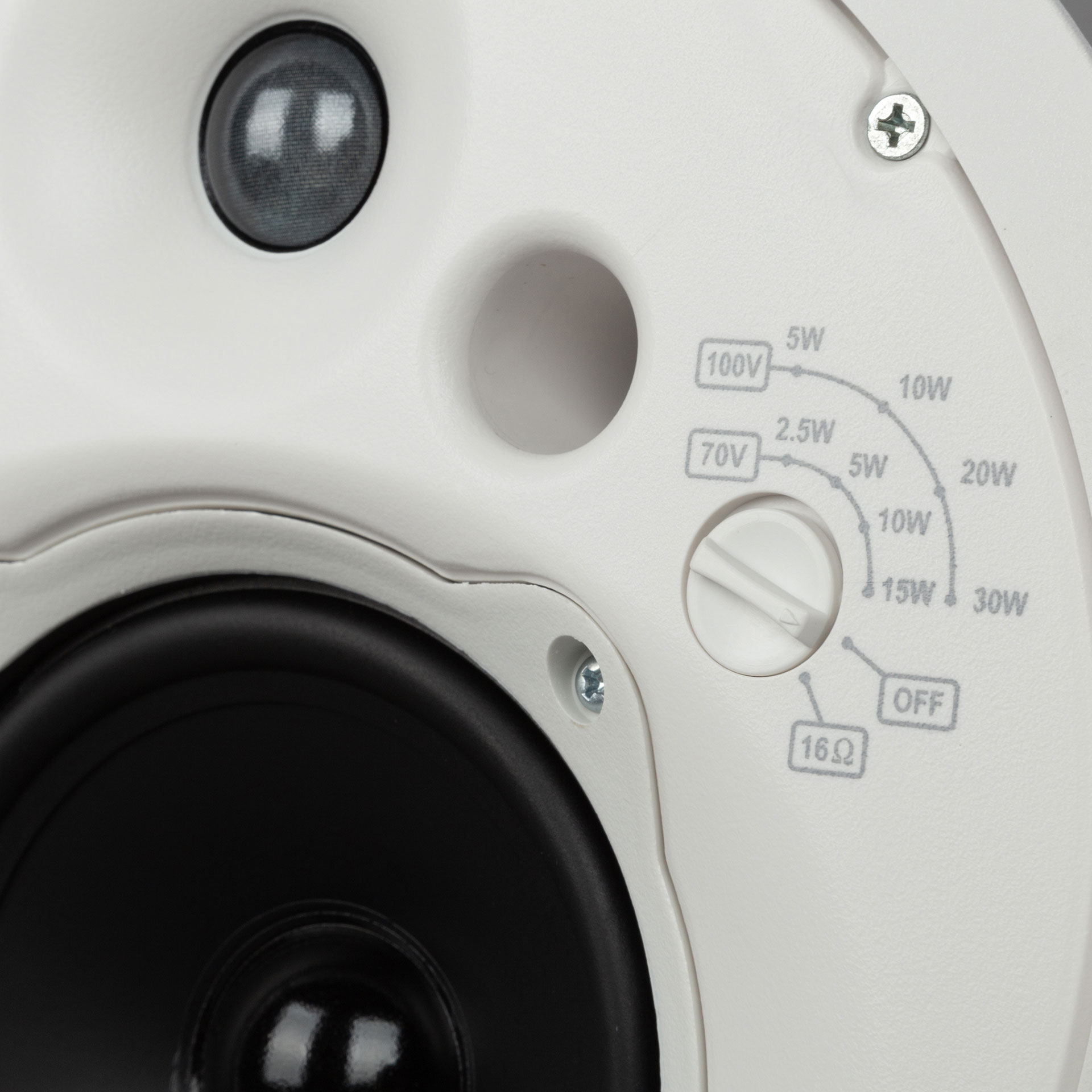 Настінний гучномовець (трансформаторний - 70/100 В), 4 "+ 0,75", покриття осеметричне 120 °, 68 Гц - 20 кГц (-10дБ); RMS / Program - 50/100 - 8Ом, 70 / 100В (30, 15, 7,5, 3,5 Вт), SPL 110 дБ (розрахунковий пік @ 1 м), колір - білий, 2.9 кг, IP54, універсальне кріплення - X-mount в комплекті |