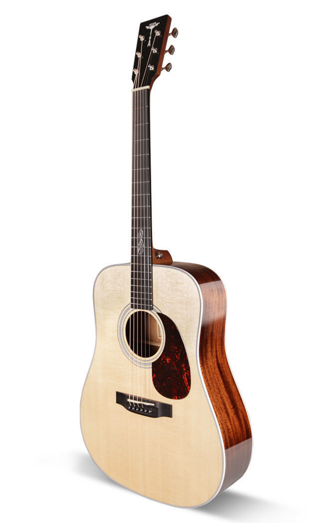 Акустична гітара. Форма корпусу: Dreadnought. Верхня дека - цільна сікстинська ялина, боковини та задня дека - цільна з червоної деревини (махагоні), накладка на гриф - чорна деревина (ebony). Глянсове покриття. В комплекті - фірмовий гітарній чохол, ганчірка, ремінь.