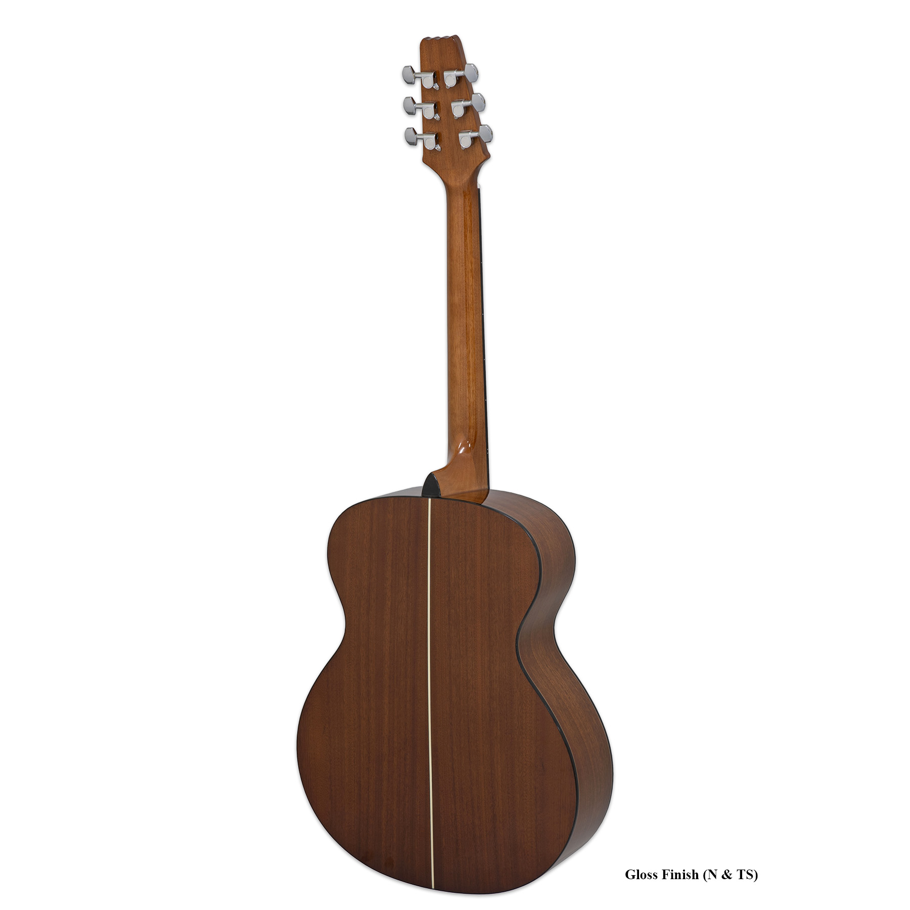 Акустична гітара. Верхня дека: ялина Задня дека та обичайки: сапелі Гриф: махагон Накладка грифа: палісандр Кількість ладів: 20 Поріжок: ABS Ширина поріжка: 43 мм Мензура: 650 мм (25-1/2″) Бридж: палісандр Седло: ABS Фурнітура: хром Покриття: глянцевий Tobacco Sunburst Чохол в комплекті