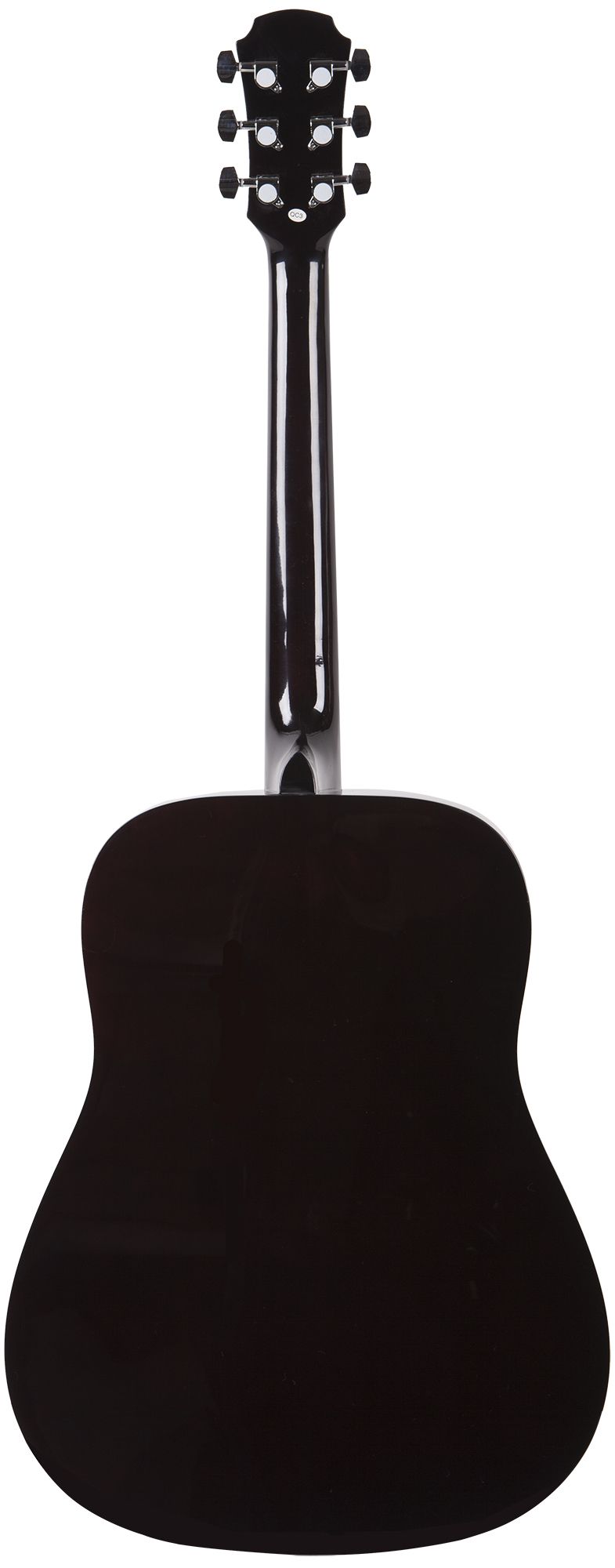 Акустична гітара. Верхня дека: липа Задня дека та обичайки: липа Гриф: нато Накладка грифа: лавр Кількість ладів: 20 Мензура: 650 мм (25-1/2″) Бридж: лавр Фурнітура: хром Покриття: коричневий санберст