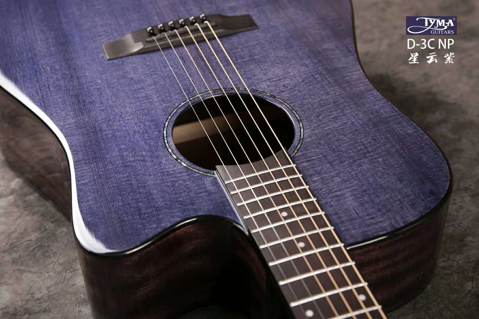 Електро акустична гітара. Тип корпусу: Dreadnaught Cutaway Верхня дека: Масив Ситхінська ялина Боковини і нижня дека: Червоне дерево Гриф: Червона дерево Брідж: Палісандр Накладка на гриф: Палісандр Ширина поріжка: 43 мм Механіка: хромовані Diecast Кількість ладів: 20 Мензура: 645 мм Електроніка: TYMA T200 Покриття: Глянцеве Колір: Фіолетовий прозорий. Чохол в комплекті.