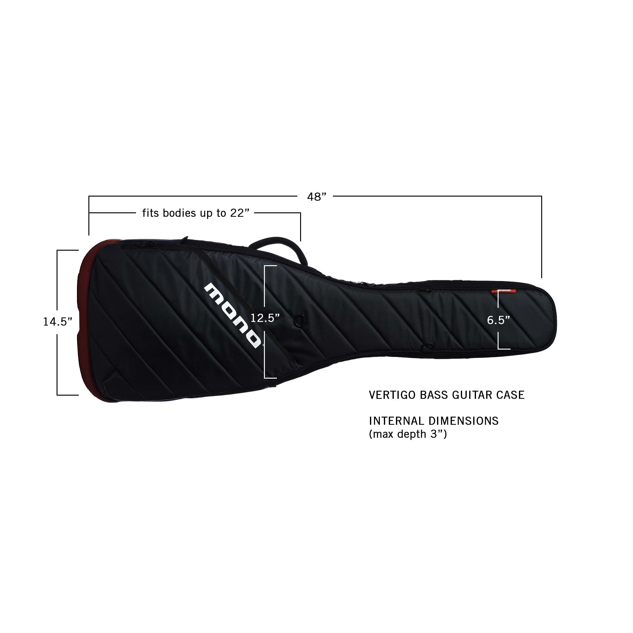 MONO M80-VEB-BLK 14 868 грн. (є в наявності) Чохол для бас-гітари Vertigo, чорний. Цей чохол призначений для всіх стандартних корпусів і деяких не дуже стандартних басів. Формований Vertigo™ Headlock® підходить для стандартних і широких гітарних грифів. Внутрішні розміри: 121,9 x 36,8 x 7,6 см Зовнішні розміри: 126,0 x 48,0 x 14,0 см Розміри зовнішньої кишені: 17,8 см / 43,2 см x 38,1 см x 2,5 см Вага: 2,7 кг