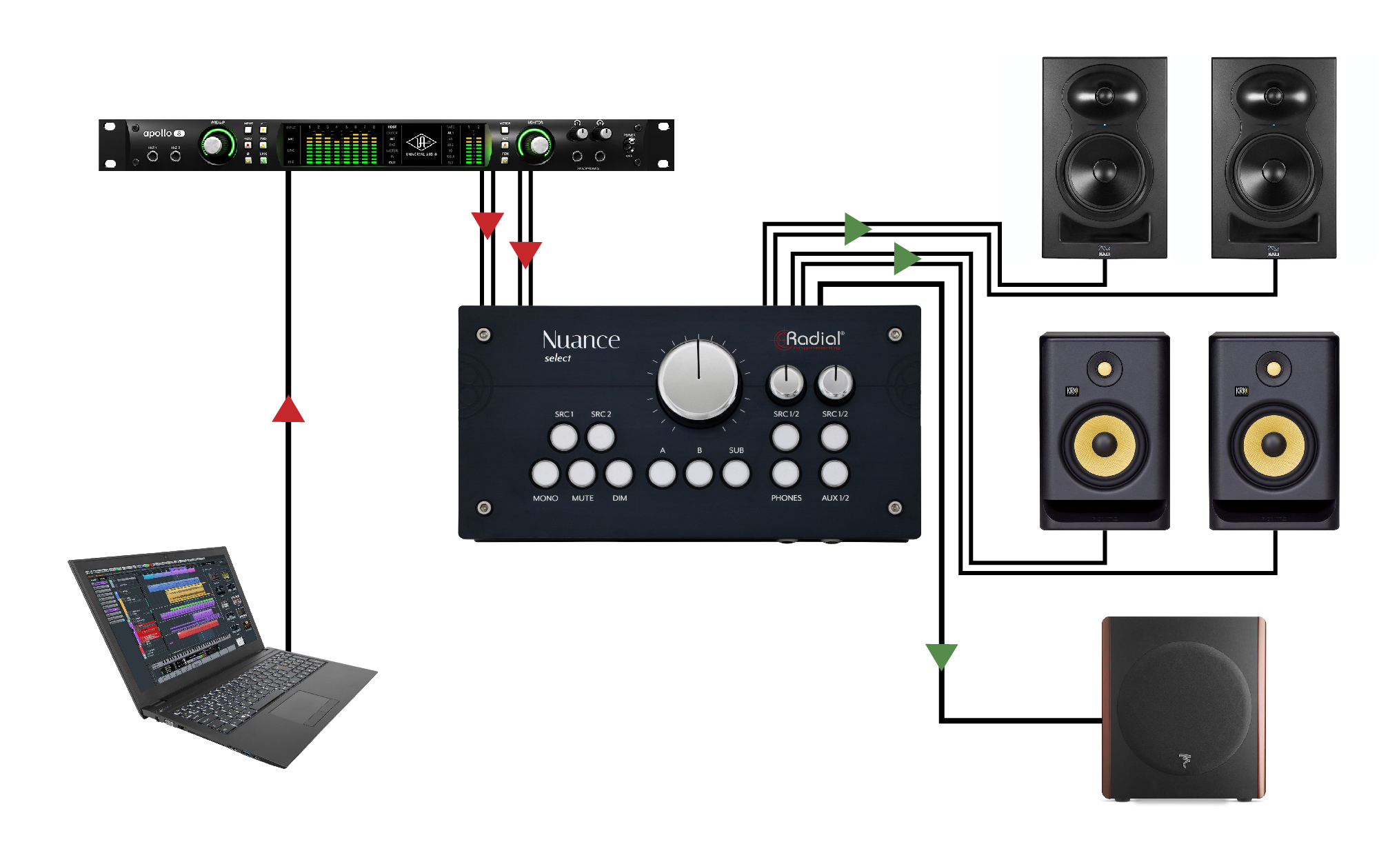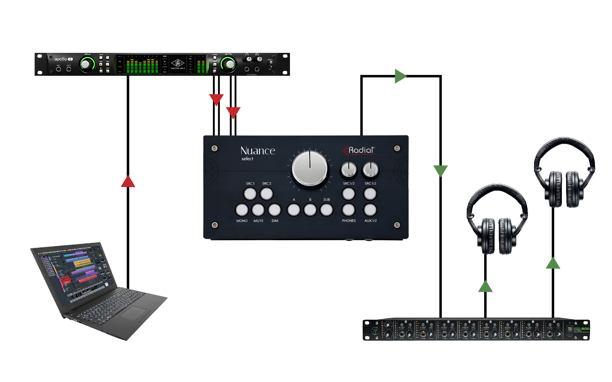 Професійний контролер моніторингу, забезпечує перемикання між двома парами моніторів та сабвуфером, має два стерео-вхідних канали з можливістю додаткового виходу Aux, два незалежні навушникові підсилювачі з вибором джерела для кожного, забезпечує надзвичайно низький рівень спотворень для максимальної прозорості аудіо, частотна характеристика 2 Гц – 200 кГц ±0,25 дБ при +4 дБu, загальні спотворення менше ніж 0,00001% при 1 кГц та +18 дБu, вхідний імпеданс 20 кОм, вихідний імпеданс 112 Ом, співвідношення сигнал/шум 125 дБ, 127 дБ A-важене, максимальний вхідний рівень +27 дБu, максимальний вихідний рівень +26 дБu, розміри 254 x 133 x 76 мм, живлення ±15 В, +5 В DC, максимальна потужність 29 Вт, адаптер входить у комплект.