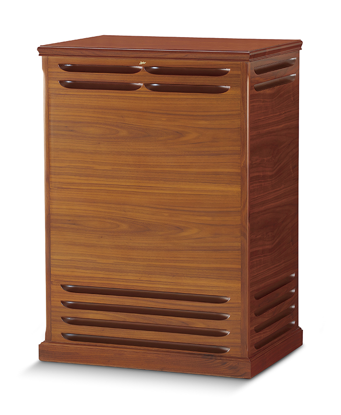 Модель 991 — це повнорозмірна акустична система в стилі класичних Leslie, виконана у вишуканому горіховому корпусі. Вона оснащена тими ж роторними динаміками, що й моделі 122H/142H, забезпечуючи автентичне вінтажне звучання. Завдяки 300-ватному біампінговому підсилювачу, регульованому овердрайву та 3-смуговому еквалайзеру, 991 ідеально підходить для церков, студій та концертних залів, де важливі як звук, так і естетика.