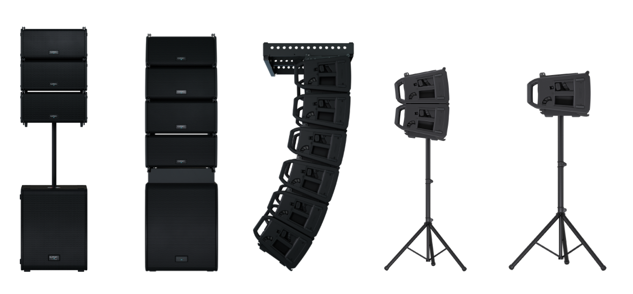 - Швидке, просте і безпечне встановлення, налаштування та демонтаж. Все це, включно з регулюванням кутів між кабінетами для ефективного озвучування ближнього, середнього чи дальнього поля, може виконати всього один звукотехнік без використання спеціальних інструментів та додаткових елементів.