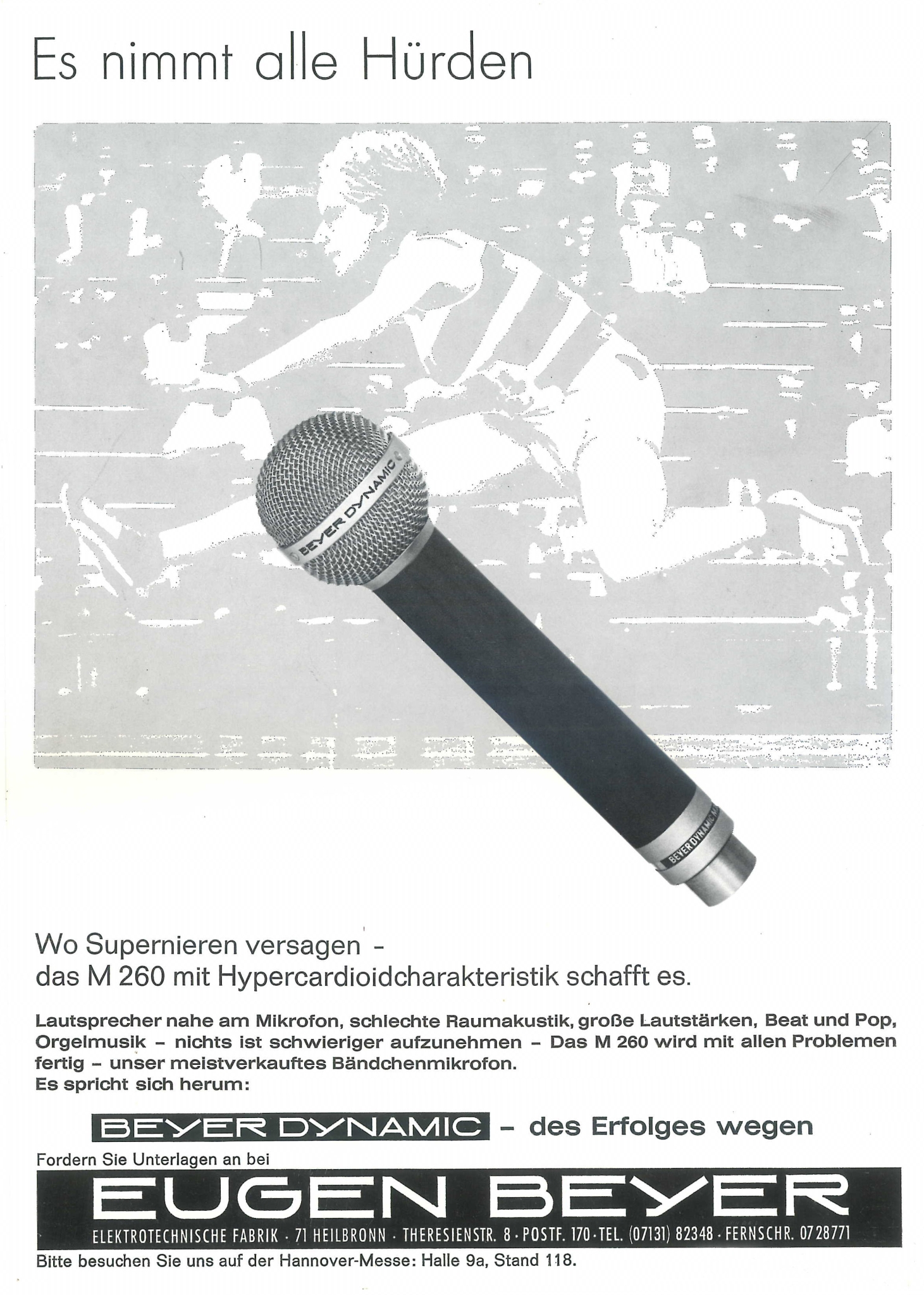 Часто реклама також була з прив’язкою до тогочасних важливих подій, як-от літні Олімпійські ігри. Хіт продажів — стрічковий мікрофон M 260 у цій рекламі успішно долає “всі перешкоди” у своїй галузі, відповідає всім вимогам і може використовуватися для різних задач.