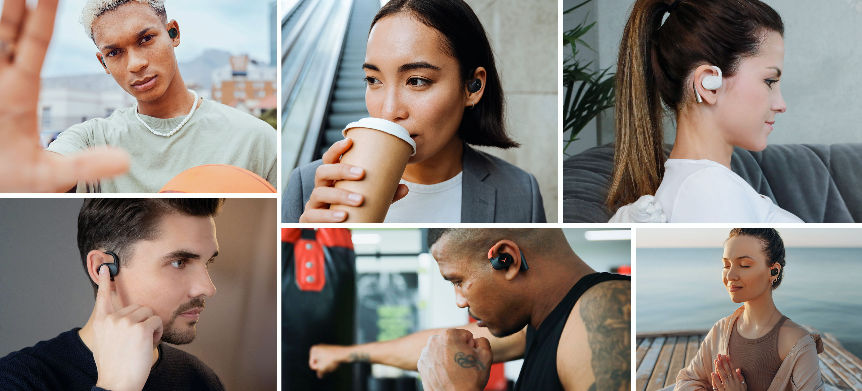 Отримайте неймовірні враження від відкритості звучання та унікальної зручності при носінні нових відкритих True Wireless навушників