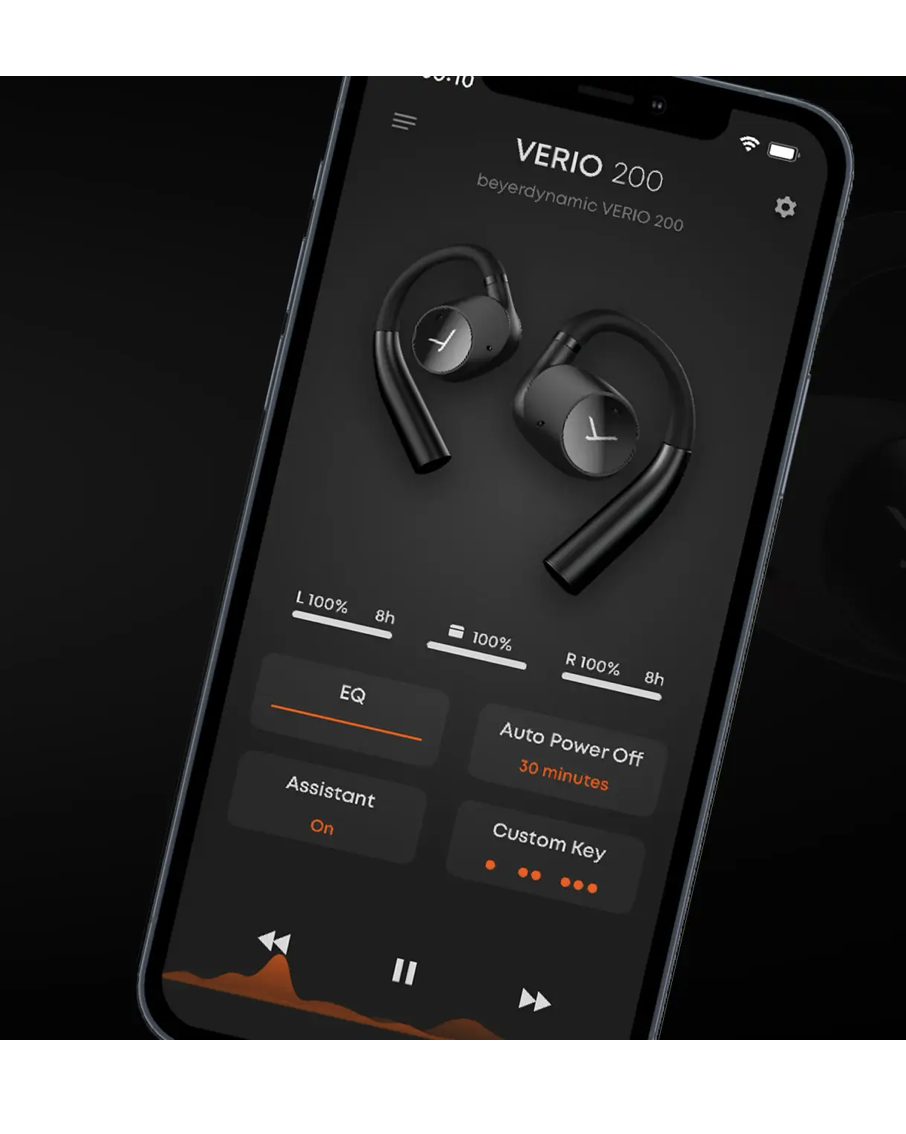 Персоналізуйте свої налаштування за допомогою додатка beyerdynamic та керуйте VERIO 200 за допомогою сенсорних датчиків на навушниках. Багатоточковий інтерфейс Bluetooth® 5.3 забезпечує чітку передачу аудіопотоку за будь-яких умов.