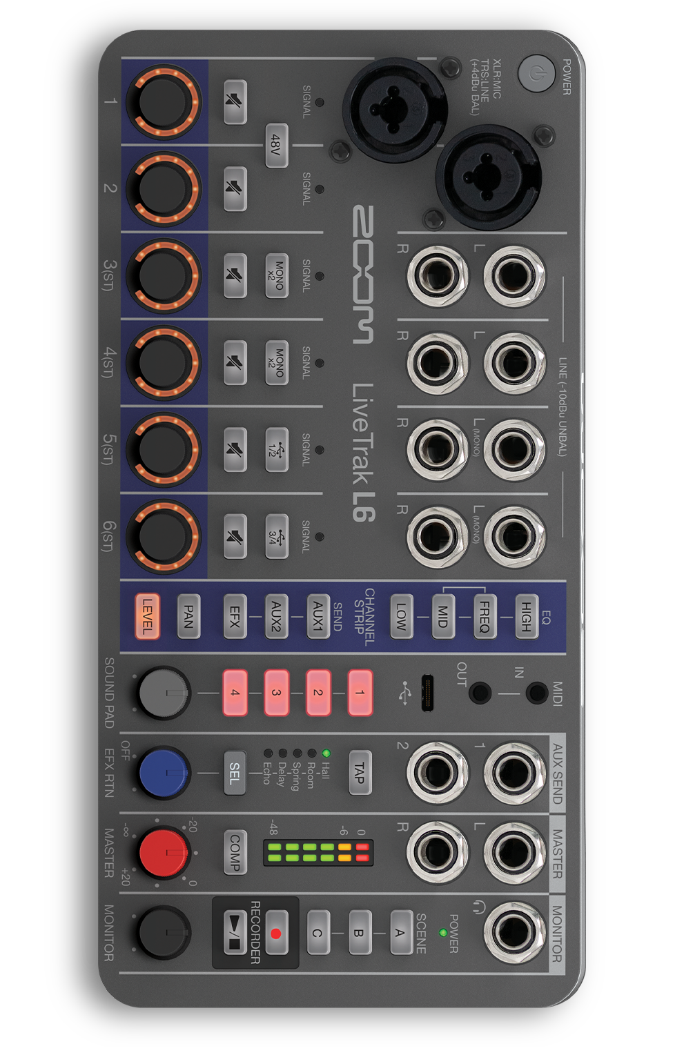 Zoom LiveTrak L6 — це перший у світі цифровий портативний мікшер, оснащений подвійними АЦП з технологією запису