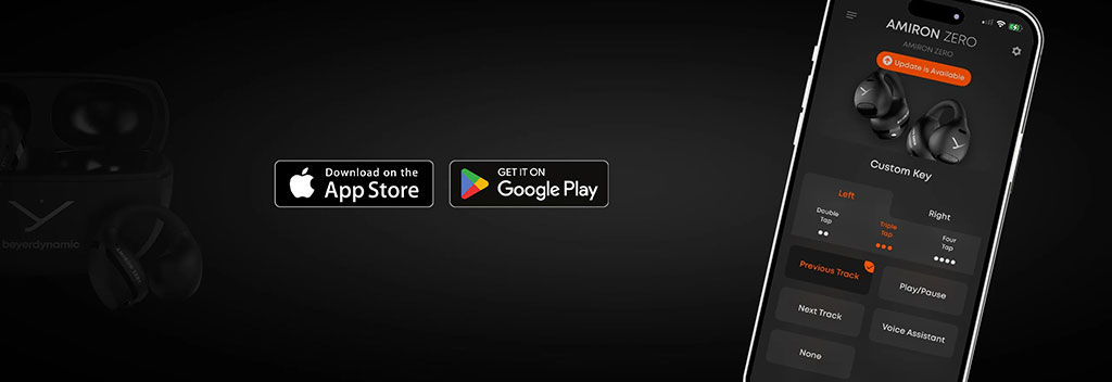Підключіть Amiron Zero до свого мобільного телефону через Bluetooth. Завантажте застосунок beyerdynamic та встановіть його на свій мобільний телефон. Після відкриття застосунку ви можете додати свої Amiron Zero до застосунку через опцію Add product. Застосунок beyerdynamic сам перевіряє, чи доступні оновлення для ваших навушників Amiron Zero. Коли з’являється повідомлення про доступне оновлення, дотримуйтесь інструкцій у застосунку, щоб встановити його. Для цього вам потрібне з’єднання з мобільним інтернетом.