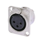 Панельний 3-полюсний роз'єм типу XLR "мама", фланець типу "D", срібні контакти для пайки, корпус з нікелю В упаковці 100 шт.