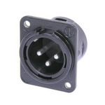 Панельний 3-полюсний роз'єм типу XLR "тато", фланець типу "D", контакти для пайки, чорний корпус, срібні контакти. Монтажні отвори з різьбою М3 В упаковці 100 шт.