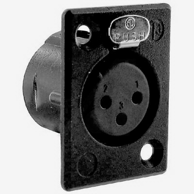 Панельний 3-полюсний роз'єм типу XLR "мама", вузький фланець типу "D", контакти для пайки, чорний корпус, золоті контакти. Сумісний з панелями switchcraft типу D * M, D * F; Cannon XLB2 * 31, XLB2 * 32. В упаковці 100 шт.