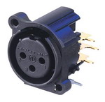 XLR-гніздо 3-контактне, "мама" для шасі, пластиковий корпус, контакт 1 відключений від шасі і землі, поперечне закріплення справа на платі