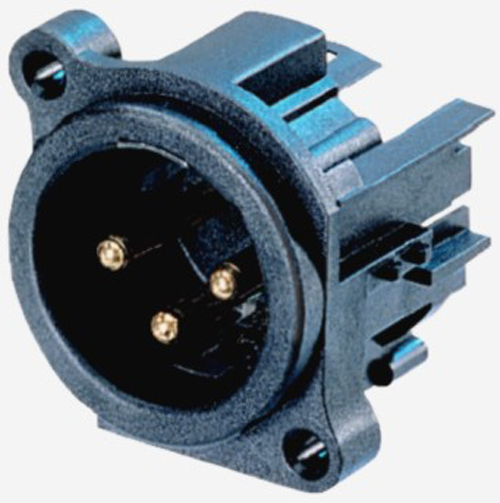 XLR-гніздо 3-контактне, "тато" для шасі, пластиковий корпус, сталевий замок-фіксатор, лівосторонній закріплення на платі