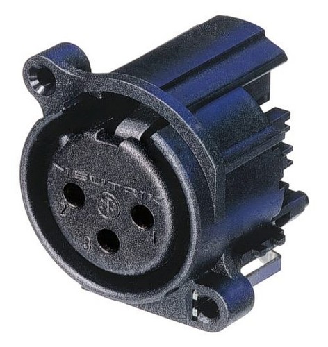 XLR-гніздо 3-контактне, "мама" позолочені контакти, пластиковий корпус, горизонтальний монтаж без замка-фіксатора