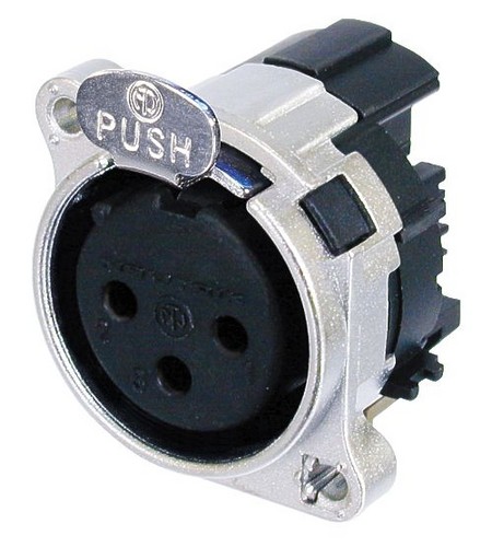 XLR-гніздо "мама" 3-контактне для шасі, металевий корпус, з пружинним заземленням на корпус, горизонтальний монтаж на плати