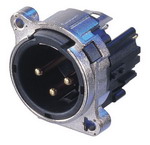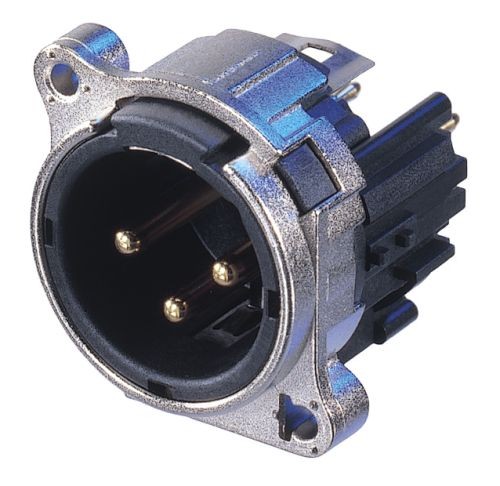 XLR-гніздо "тато" 3-контактне для шасі, металевий корпус, сталевий замок-фіксатор, вертикальне закріплення на платі