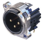 XLR-гніздо "тато" 3-контактне для шасі, металевий корпус, сталевий замок-фіксатор, горизонтальне закріплення на платі