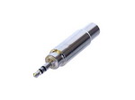 Адаптер (перехідник) 1/8" (3,5 мм) стерео міні-джек "тато" (штекер) >> 1/4" (6,3 мм) стерео джек "мама" (роз'єм), повністю металевий. 3-полюсний.