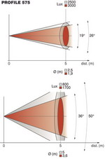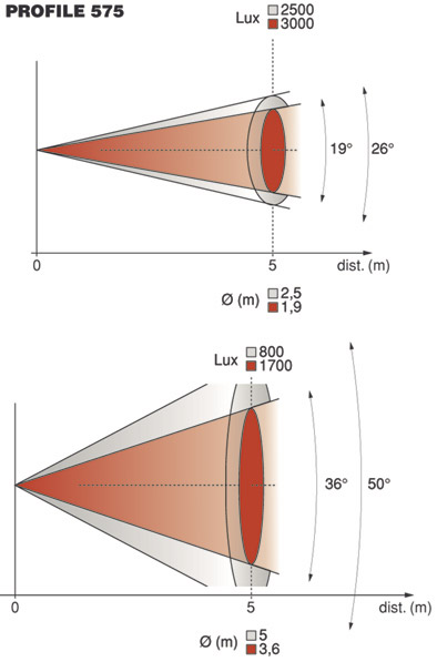Профильный прибор со сменной оптикой для получения разных углов луча. Лампа G 9,5 575W