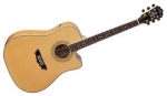 Електро-акустична гітара, Dreadnought Cutaway, передпідсилювач, корпус - мармуровий клен, верхня дека - цілісна ялина, гриф - кленовий, струнотримач / накладка - палісандр, механіка Grover. Колір - натуральний.