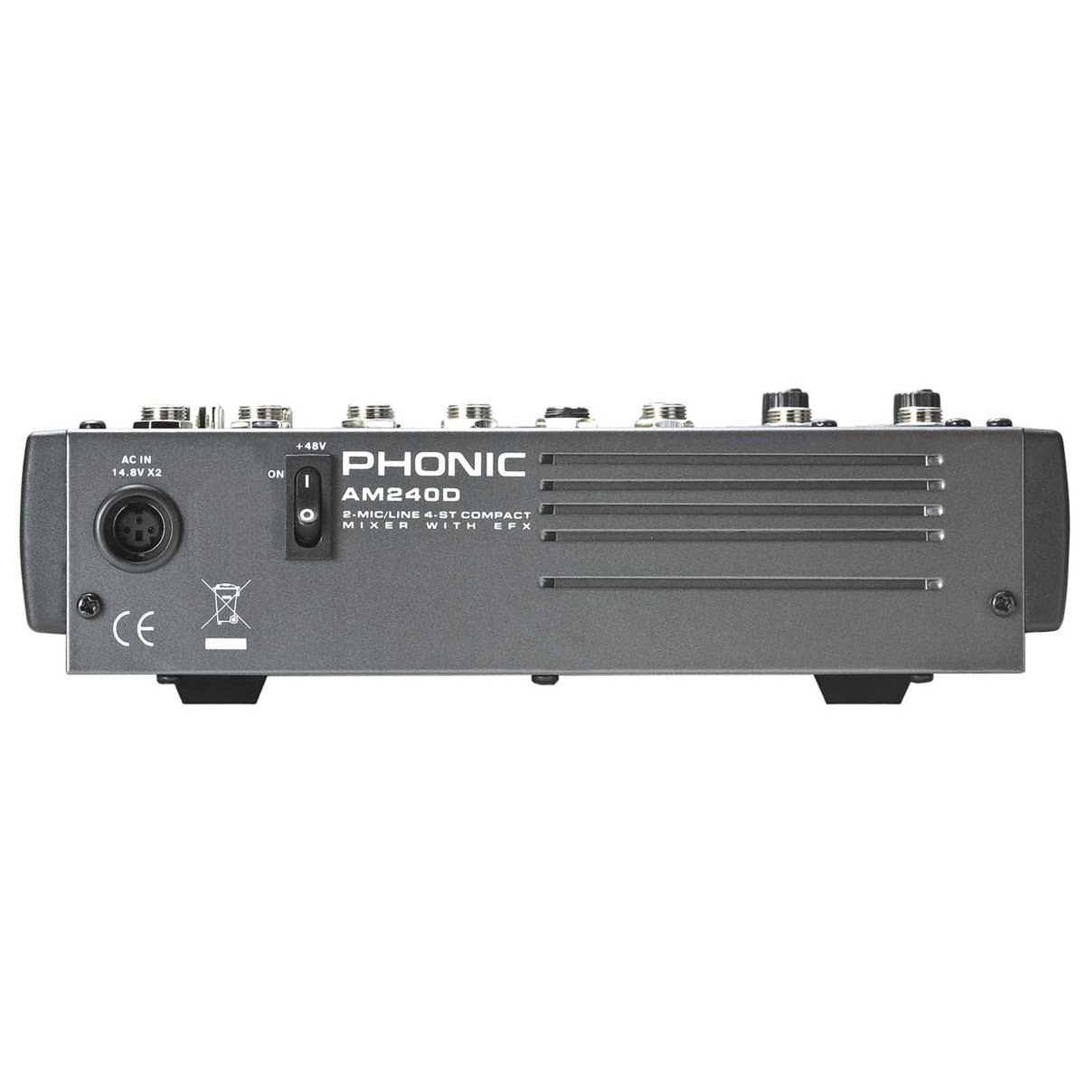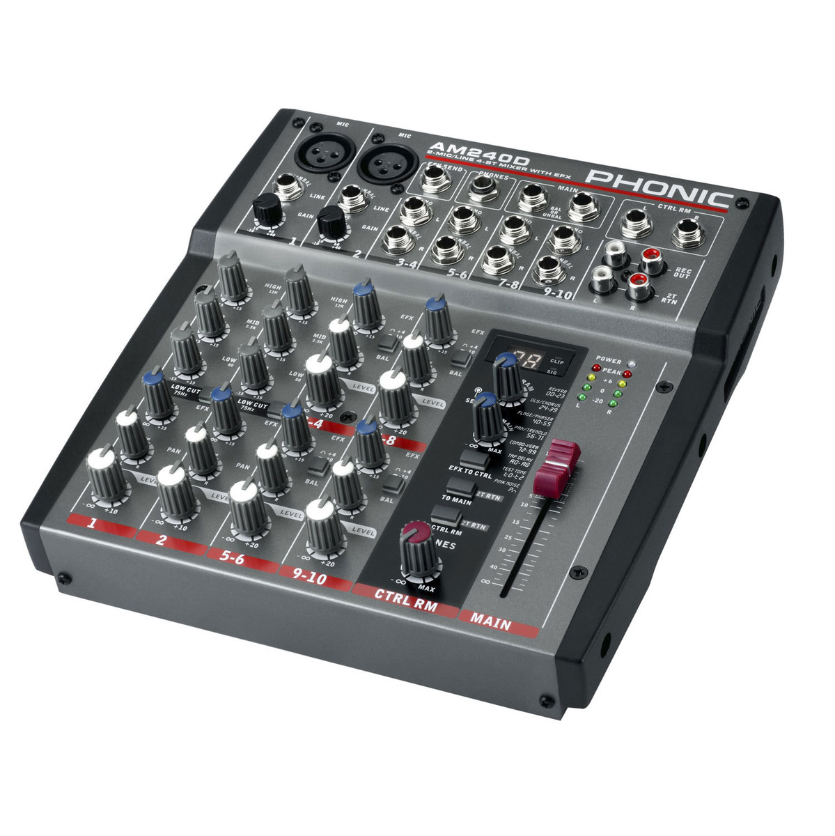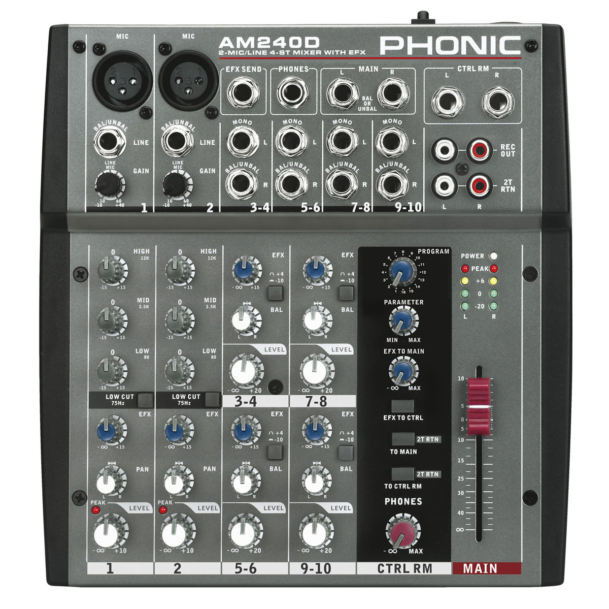 Мікшерний пульт, 2 мікр / лін (+48 В) + 4 стерео канала, MAIN L / R Stereo, 1 AUX Post-Fade Send, стерео EFX Send, вихід на навушники і монітор CTRL, 3-х смуговий параметричний EQ на моновходи, 100 програм DSP 32-bit, 190 x 56 x 233 мм, 1.5 кг